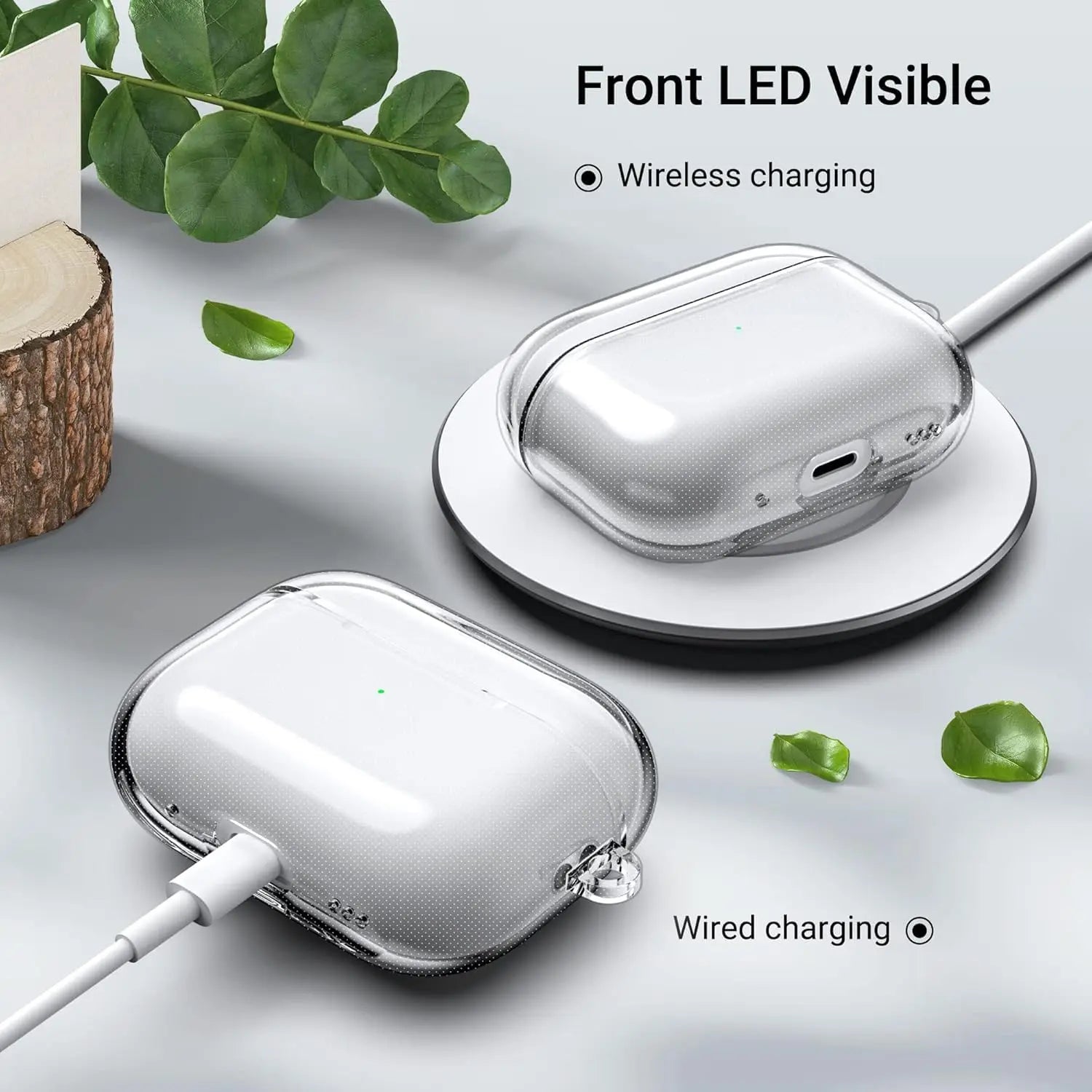 Transparent case keeps your AirPods Pro 3 stylish while offering full protection. Shockproof design guards against drops, bumps, and everyday wear. Includes a handy keychain for convenient carrying on the go. Comes with a cleaner kit to maintain your AirPods’ shine and hygiene. Perfect fit for the 2025 AirPods Pro 3rd Generation charging case. Ideal for users seeking clarity, durability, and portable functionality.