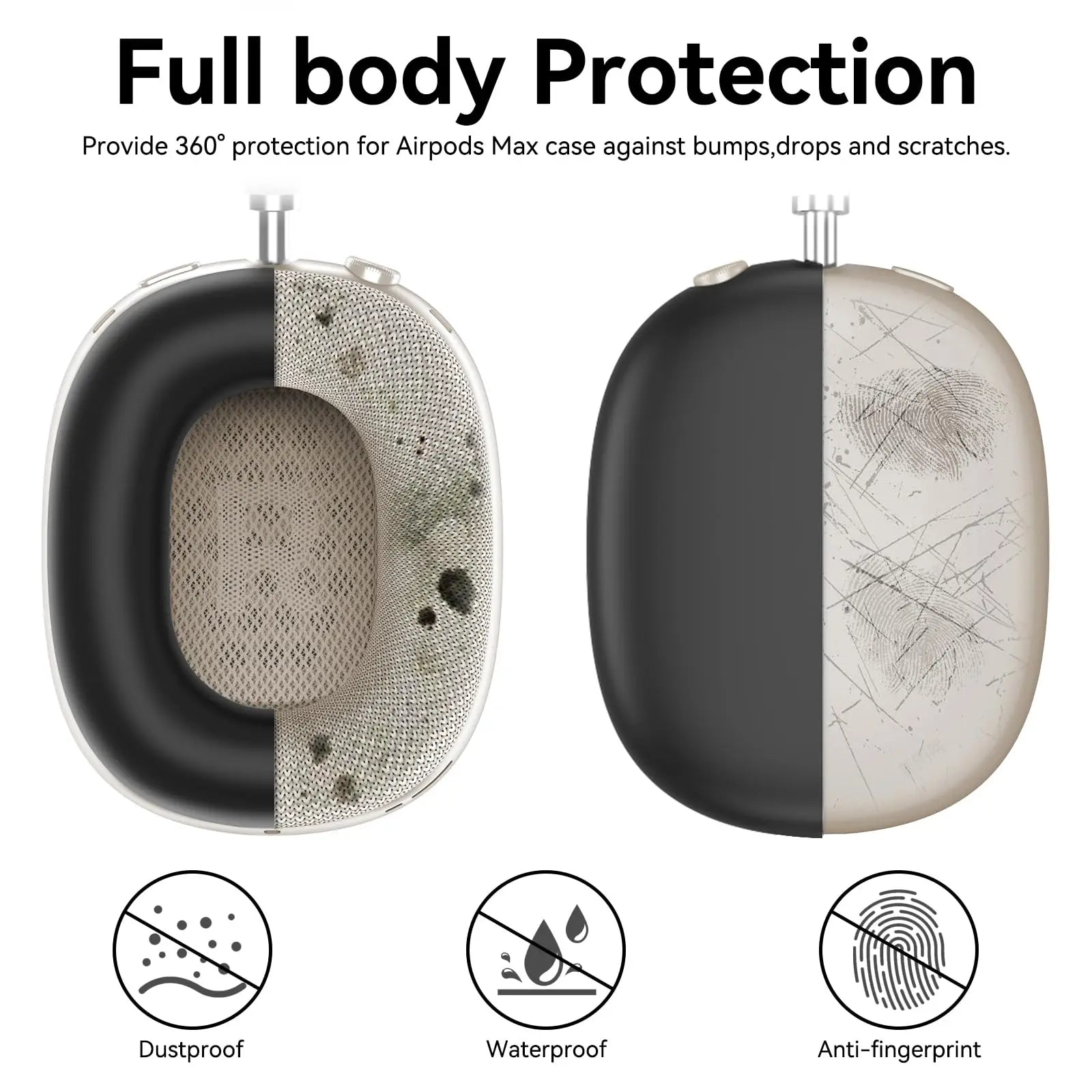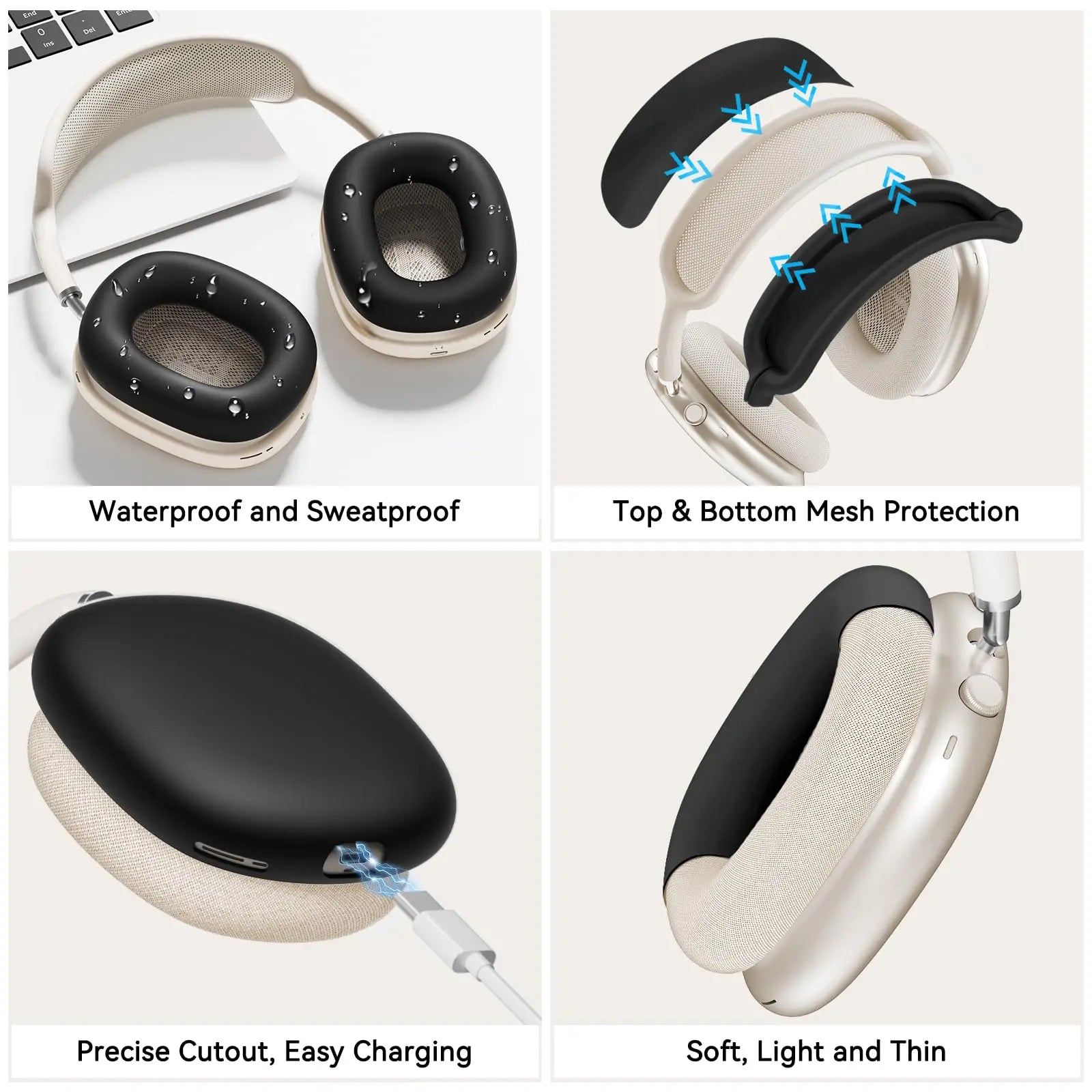 Complete 4-in-1 silicone cover set for AirPods Max headphones. Includes ear pad, ear cups, and headband covers for full protection. Durable silicone guards against scratches, dust, and daily wear. Easy to install and remove without affecting comfort or sound quality. Sleek black design keeps your AirPods Max stylish and well-protected.