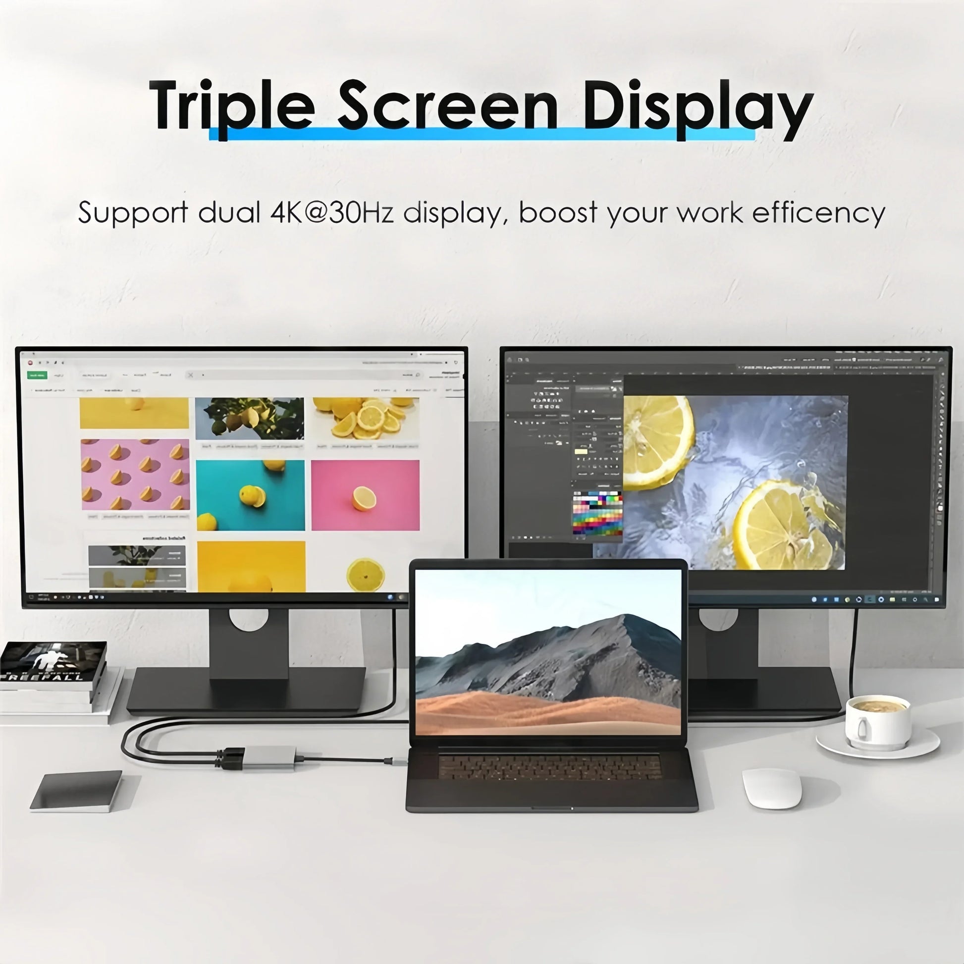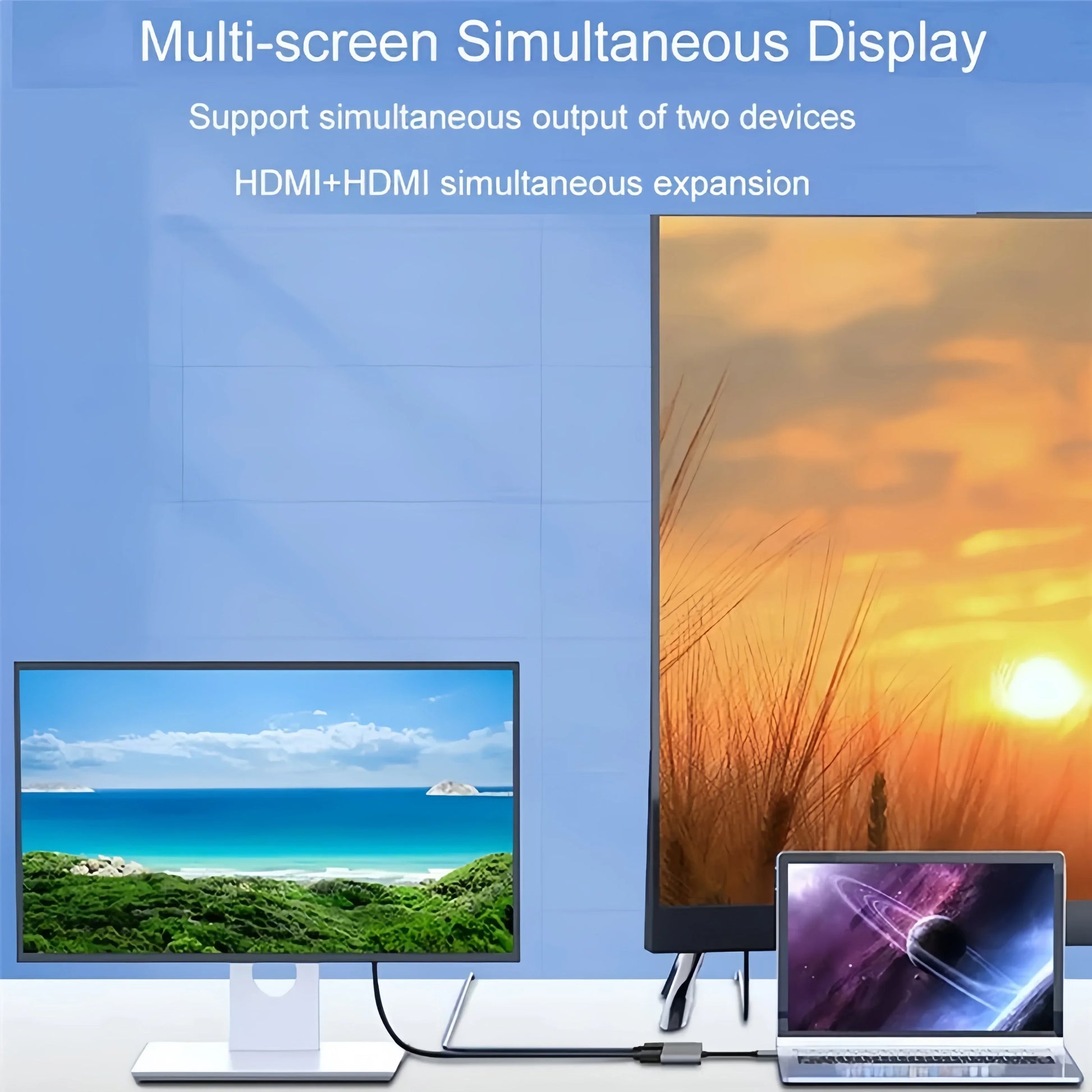 4-in-1 USB-C Docking Station Dual HDMI 4K@60Hz Adapter USB 3.0 HUB Splitter
