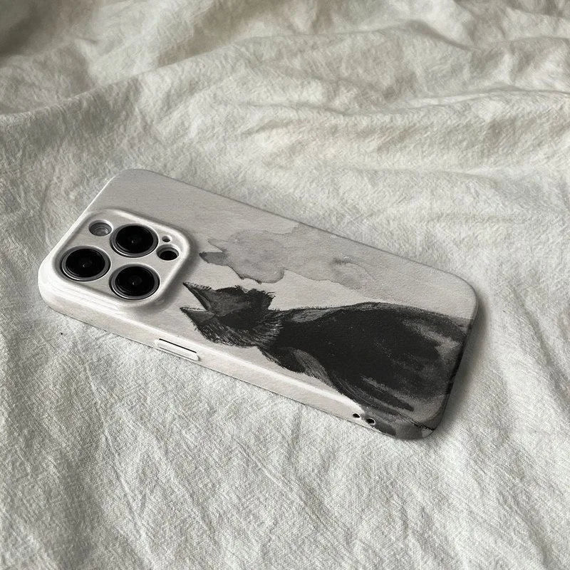 Artistic Black Cat Mirror Case for iPhone 17–11 Pro Max Watercolor Cover