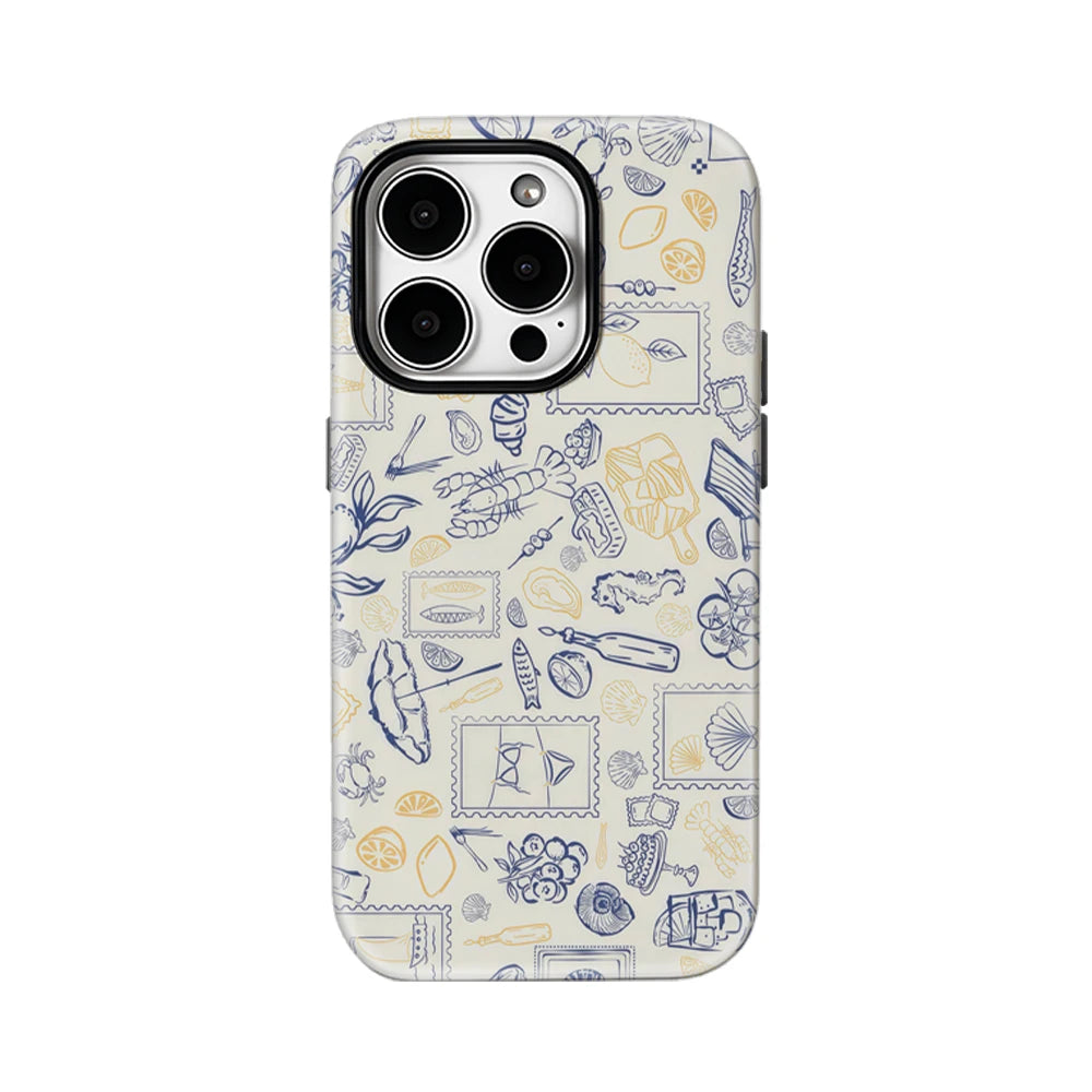 Blue Yellow Seaside Elements Case for iPhone 17 16 15 14 13 12 Pro Max Plus