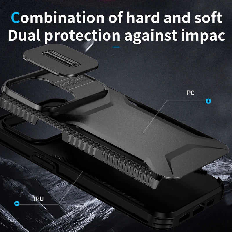 Military Grade Slide Camera Armor Case for iPhone 16 15 14 13 Pro Max
