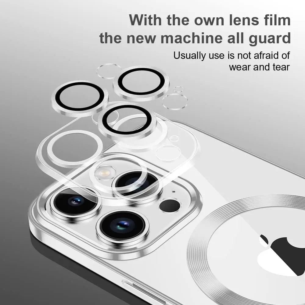 Clear luxury phone case with electroplated edges, soft shockproof protection, and built-in magnetic support, featuring an integrated camera protector to safeguard your Samsung Galaxy S25 FE in style.