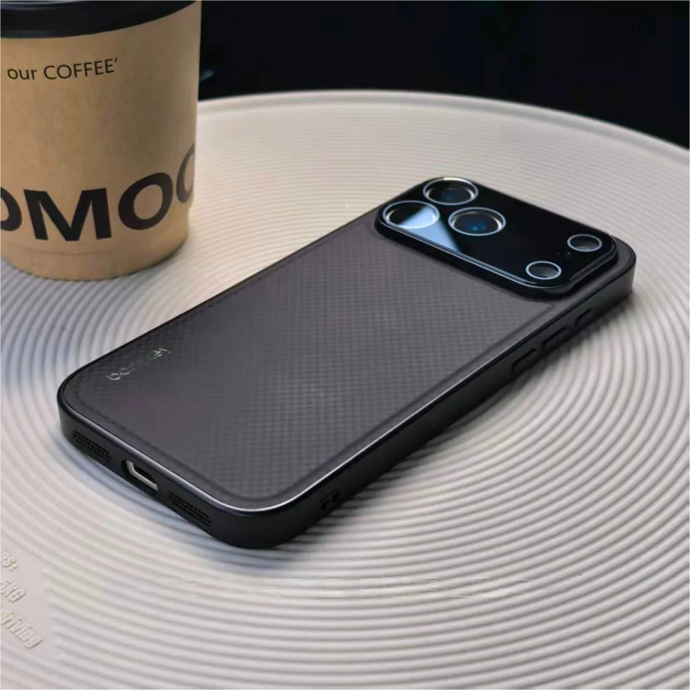 Add style and strength with this carbon fiber Kevlar texture phone case. Frosted matte finish provides a premium look and anti-slip grip. Independent metal buttons ensure smooth, responsive control. Shockproof protection keeps your iPhone safe from drops and wear. Perfect fit for iPhone 17 Air, 16, 15, 14, and 13 Pro Max models.