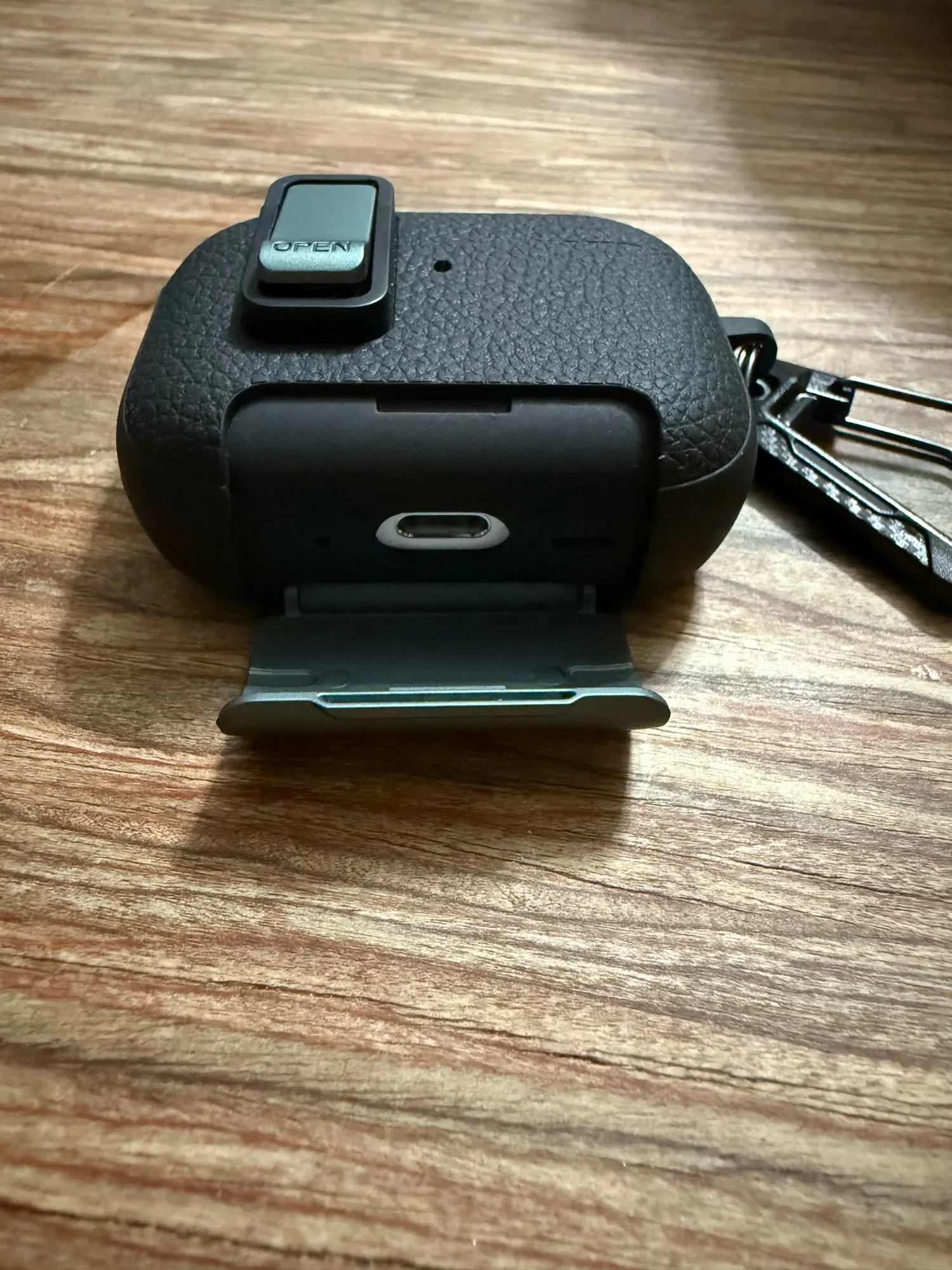 Premium leather case provides elegant style and durable protection. Secure lock design keeps your AirPods Pro 3 safe from accidental drops. Includes a sturdy bracket for convenient carrying and handling. Precision fit ensures full protection while allowing easy charging access. Soft interior cushions AirPods and prevents scratches or damage.