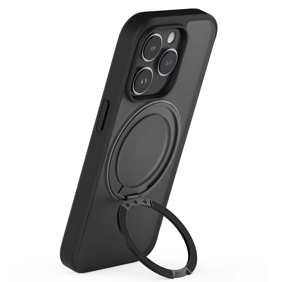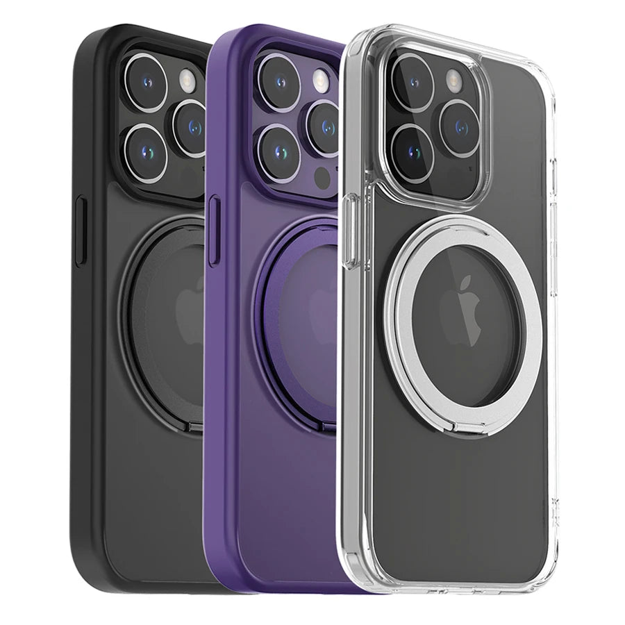 This high-quality magnetic phone case features a durable TPU frame and a clear PC back, providing reliable protection with a sleek design. Equipped with a built-in MagSafe ring and a 360° rotating kickstand, it’s perfect for hands-free viewing and wireless charging.