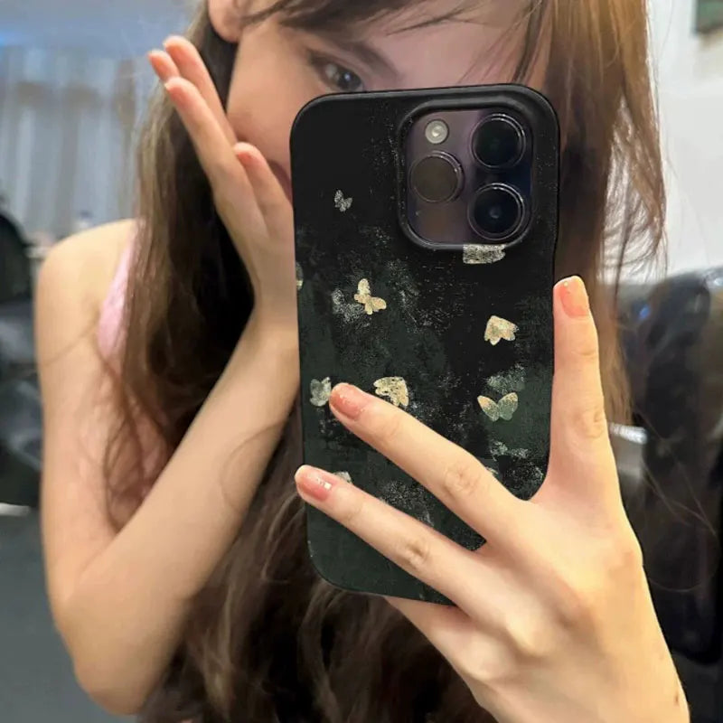 Add a dreamy, nostalgic vibe to your phone with this Korean-inspired black butterfly case.