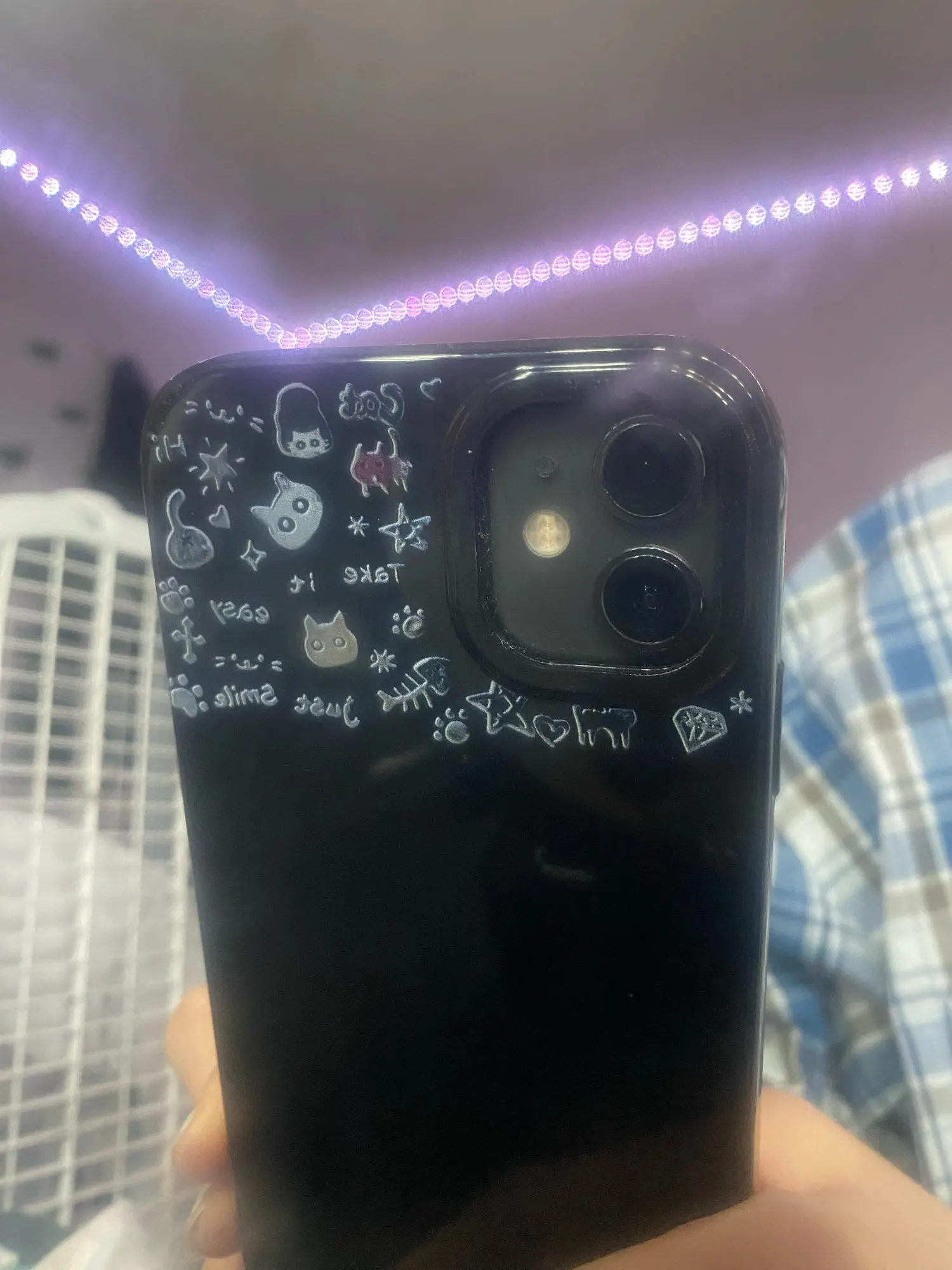 Soft TPU phone case with sweet and cool graffiti cat design. Shockproof, anti-scratch, and lightweight for comfortable everyday use. Compatible with iPhone 11–16 Pro, Pro Max, Plus, Mini, 7/8 series.