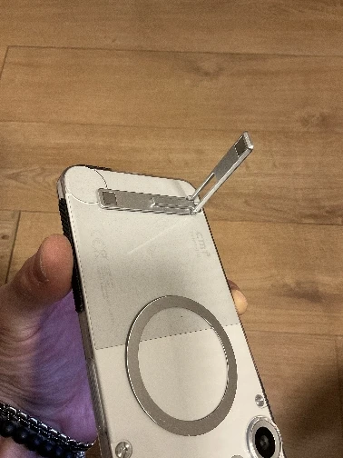 Invisible and foldable magnetic phone stand made of durable metal alloy. Ultra-thin and easy to attach to the back of your device. Perfect for hands-free use on desks, during video calls, or in the car. Compatible with most phones and MagSafe cases.