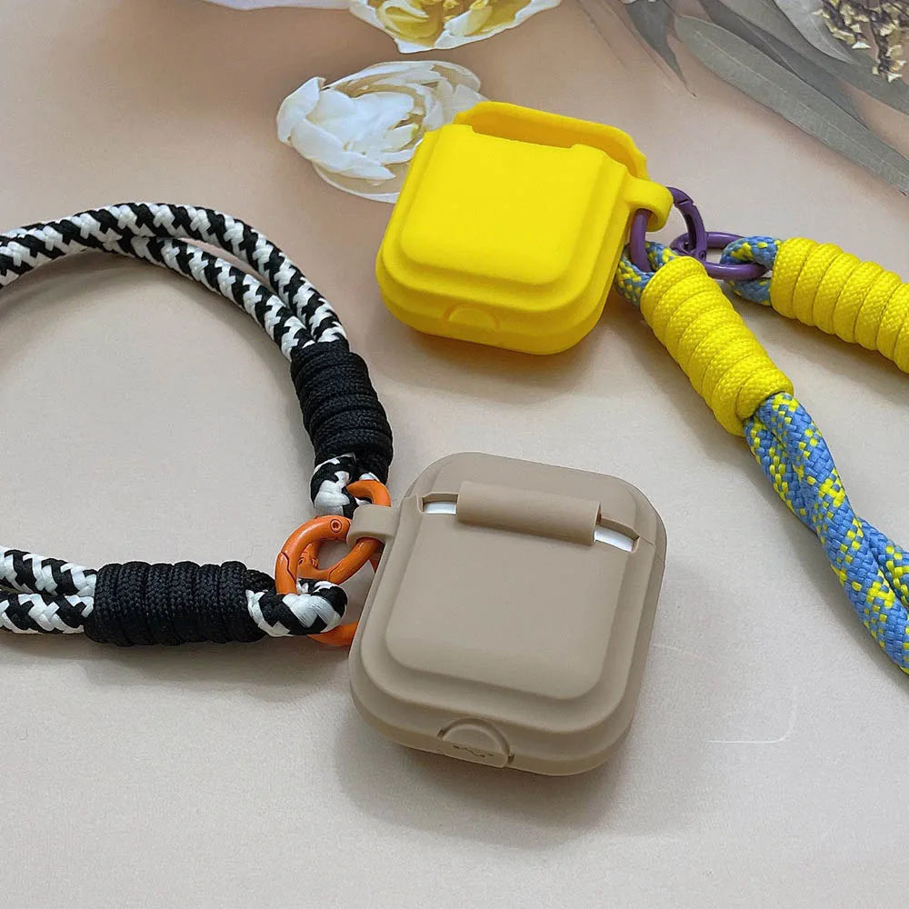 Korean Candy Color Soft Silicone Case for AirPods 1–4 with Anti-Lost Lanyard