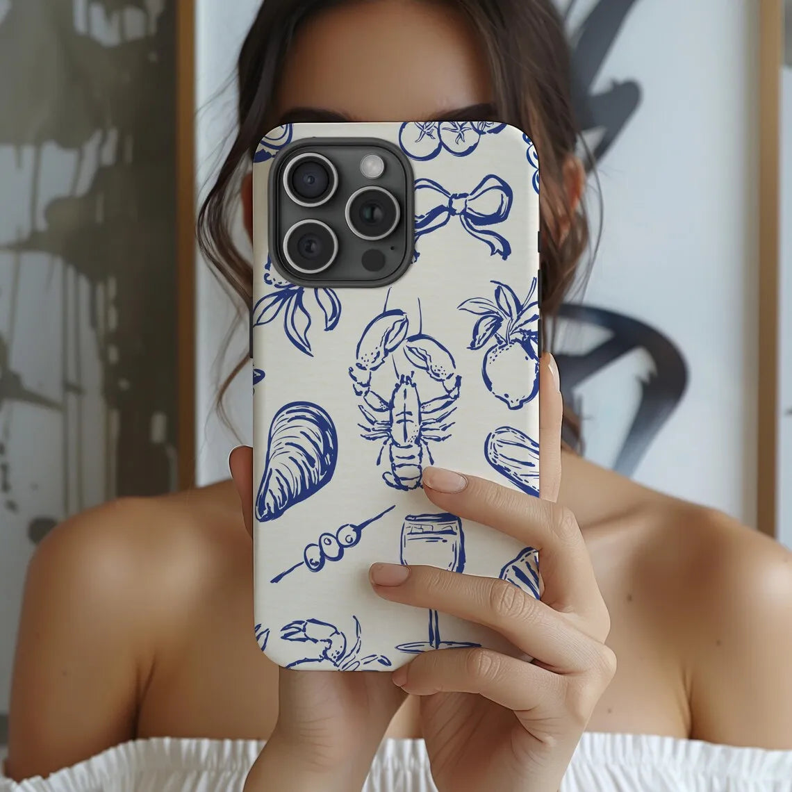 Stand out with this luxurious food line design phone case for iPhone. Compatible with iPhone 17, 16, 15, 14, 13, 12, 11, 8, 7, Air, and Pro Max. Features a strong double-layer back for superior protection and durability. Glossy finish and elegant pattern add a premium touch to your device. Perfect for fashion lovers who enjoy creative and high-end accessories.