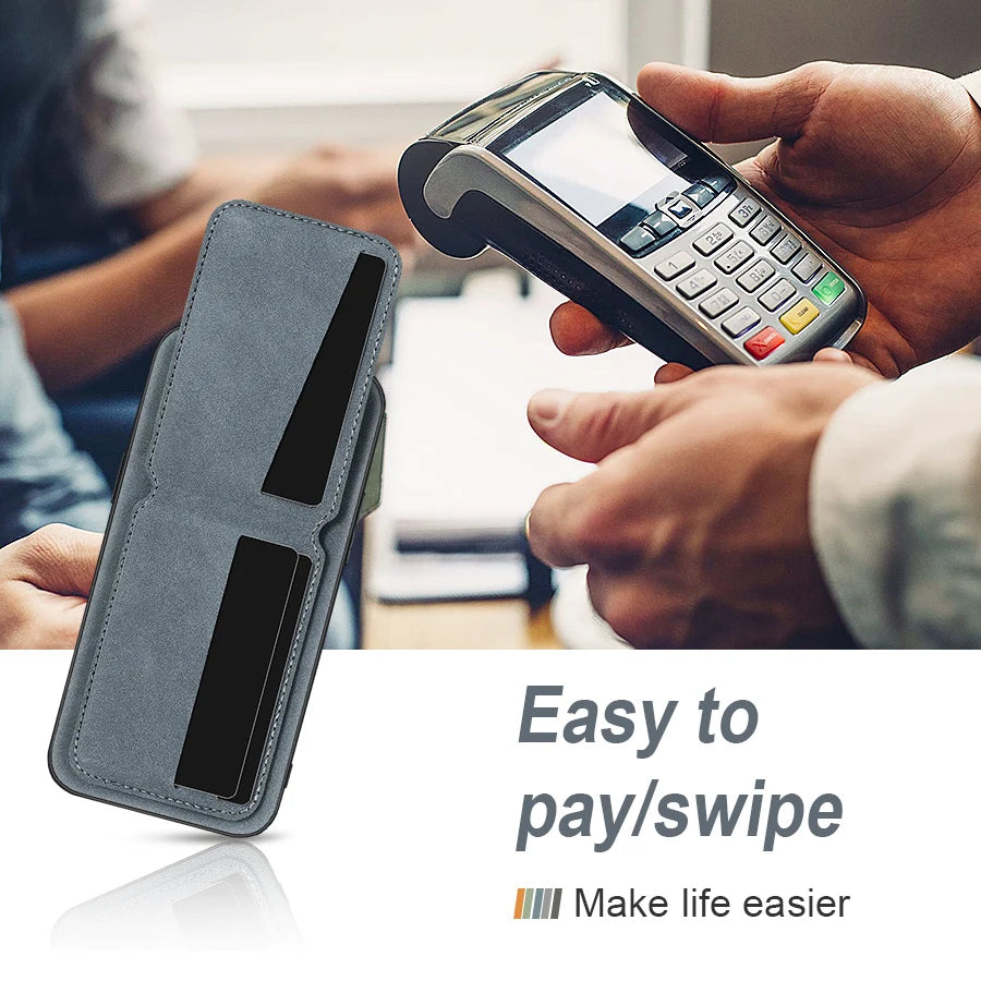 Carry your essentials with this luxury PU leather card holder phone case. Compatible with iPhone 17, 16E, 16, 15, 14, 13, and 11 Pro Max models. Features a built-in wallet pocket for cards, IDs, or cash. Shockproof back cover provides reliable protection against daily drops. Elegant, functional, and perfect for a stylish all-in-one solution.