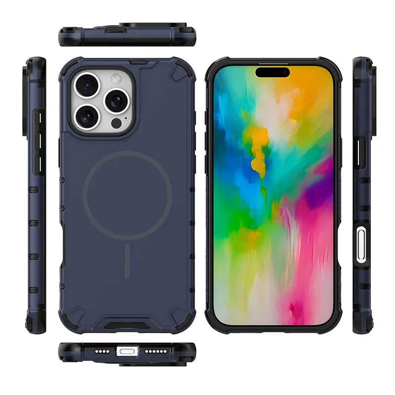 Premium PC + TPU MagSafe case for iPhone 16, 15, and 14 Pro/Pro Max. Shockproof, anti-drop, and wireless charging compatible. Strong protection with luxury finish.