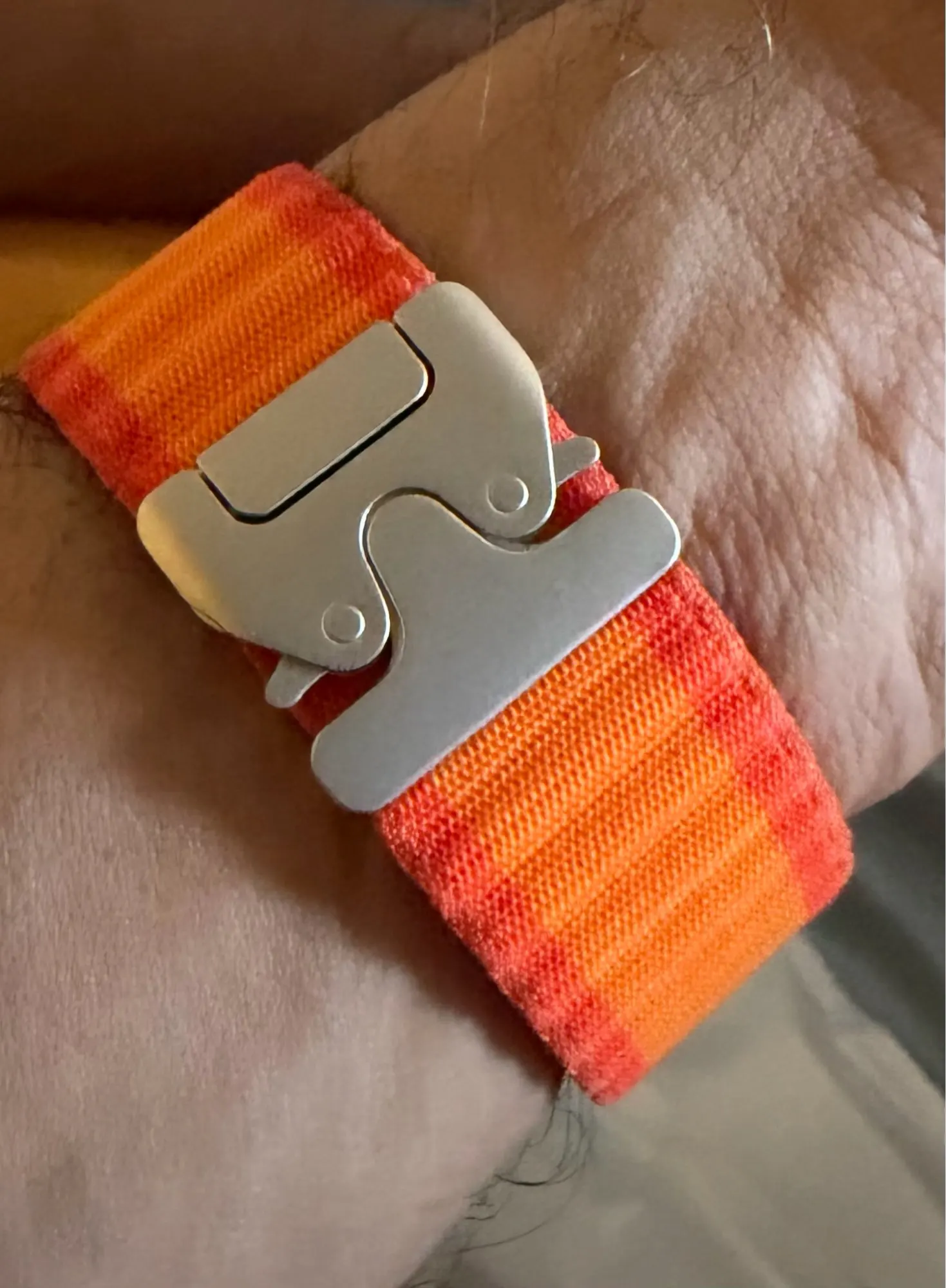 Premium nylon strap for Apple Watch. Adjustable, sweat-resistant, and durable for active lifestyles. Fits Ultra 2, Series 6–10, and SE (38–49mm).