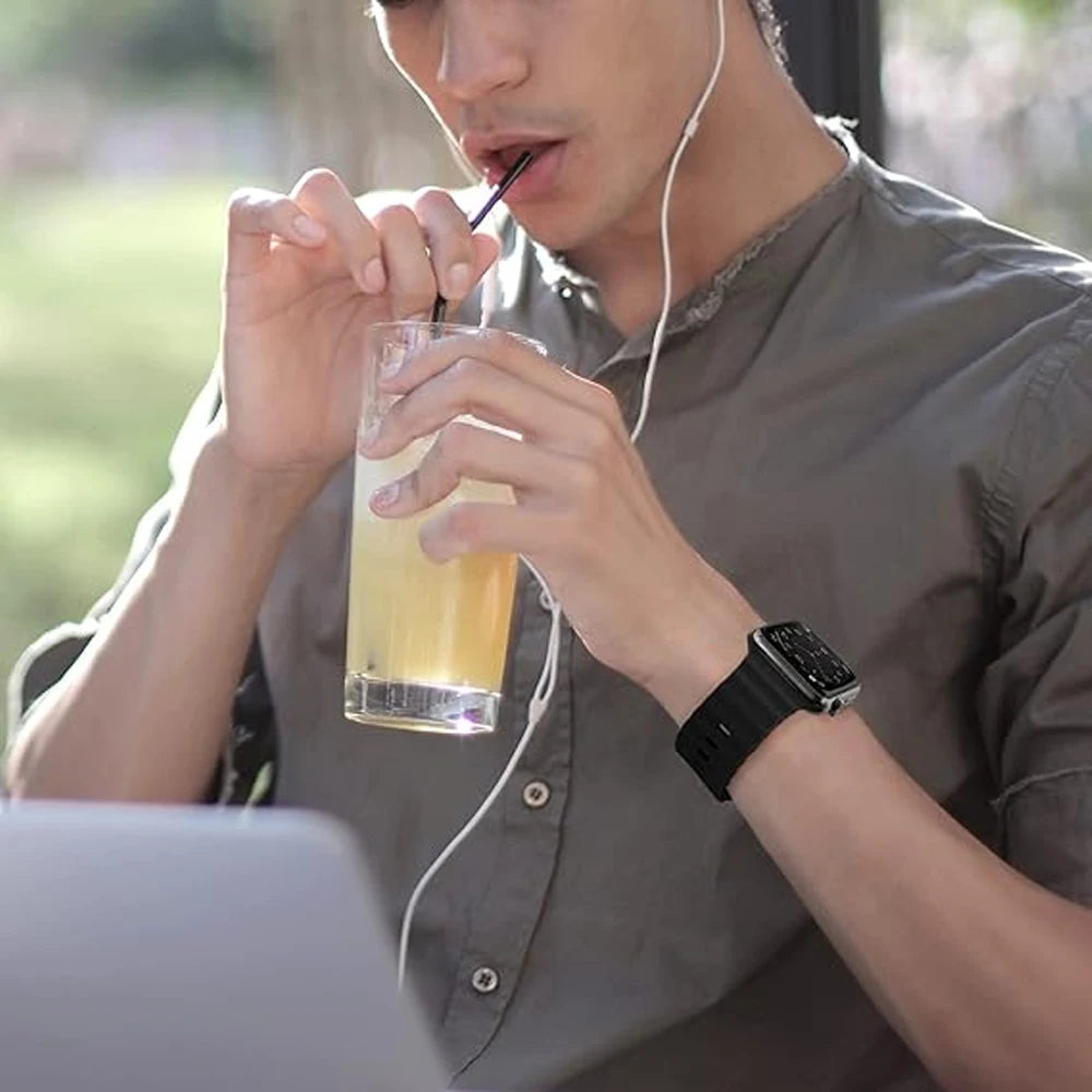 Dive into style with this durable and sporty ocean band for Apple Watch. Compatible with Ultra 3/2 and Series 11–5, SE models in all sizes. Made from high-performance silicone for comfort in water and on land. Corrosion-resistant buckle ensures a secure fit during active use. Perfect for swimming, diving, or everyday sporty adventures.