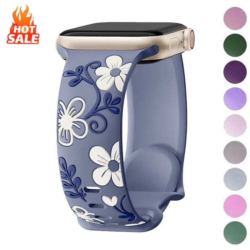 Premium engraved silicone bracelet designed for Apple Watch 40mm–49mm, compatible with Series 11 to 4 and SE models, offering a soft, comfortable fit with durable, sweat-resistant protection for everyday and active wear.