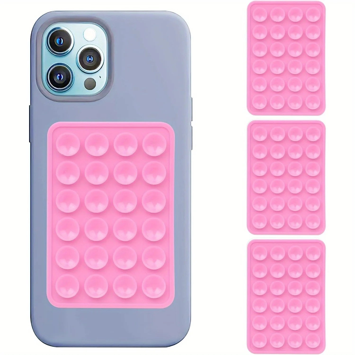 Enjoy hands-free convenience with this 3-pack silicone suction phone mount set. Strong adhesive suction grips stick to mirrors, tiles, glass, and smooth surfaces. Works with both iPhone and Android devices for universal compatibility. Perfect for showers, makeup, cooking, workouts, or video calls. Reusable, lightweight, and designed for stable, secure everyday holding.