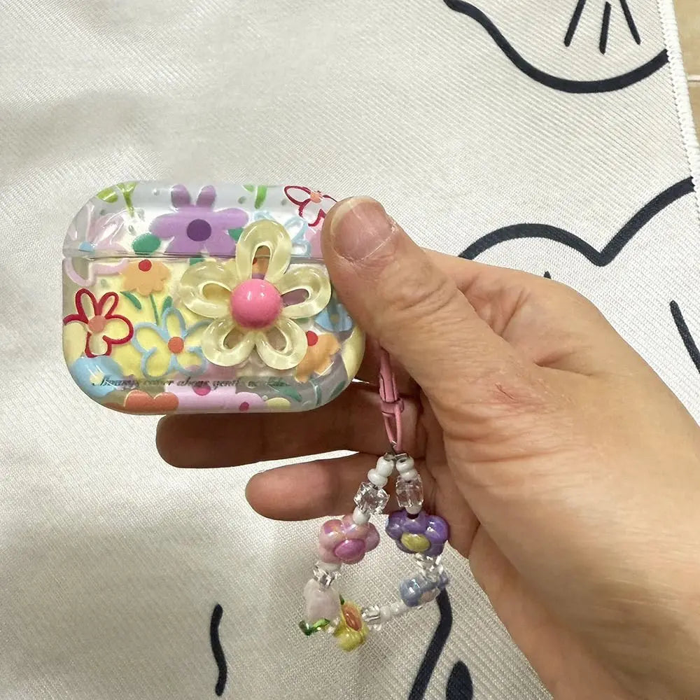 Flower TPU Earphone Case with Beaded Keychain | Shockproof for AirPods 1–4