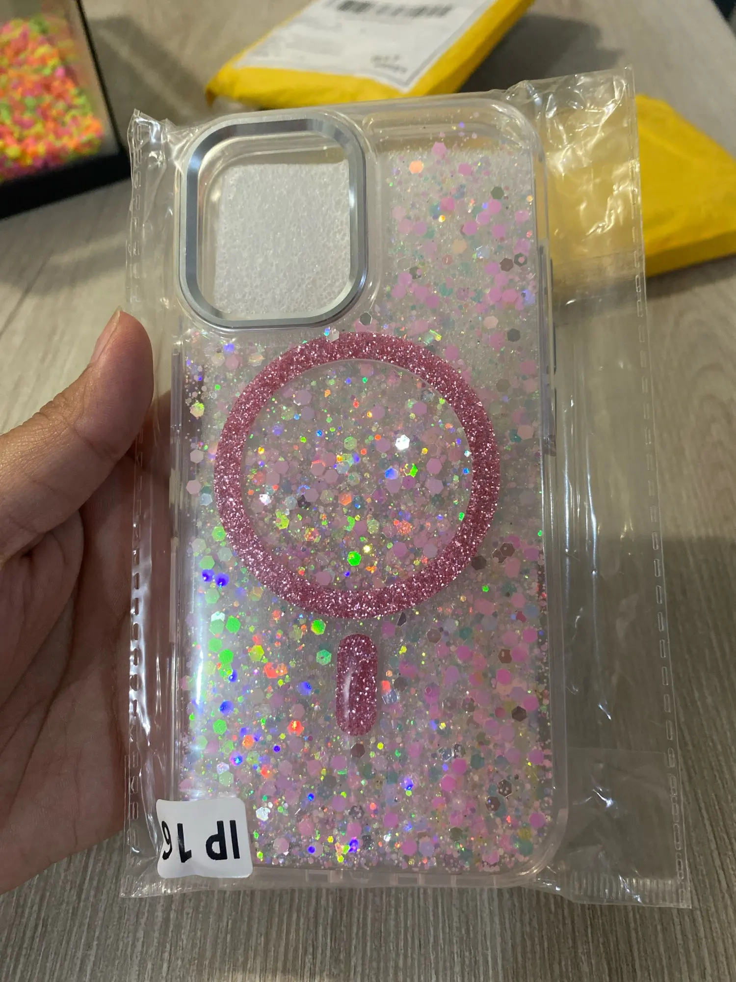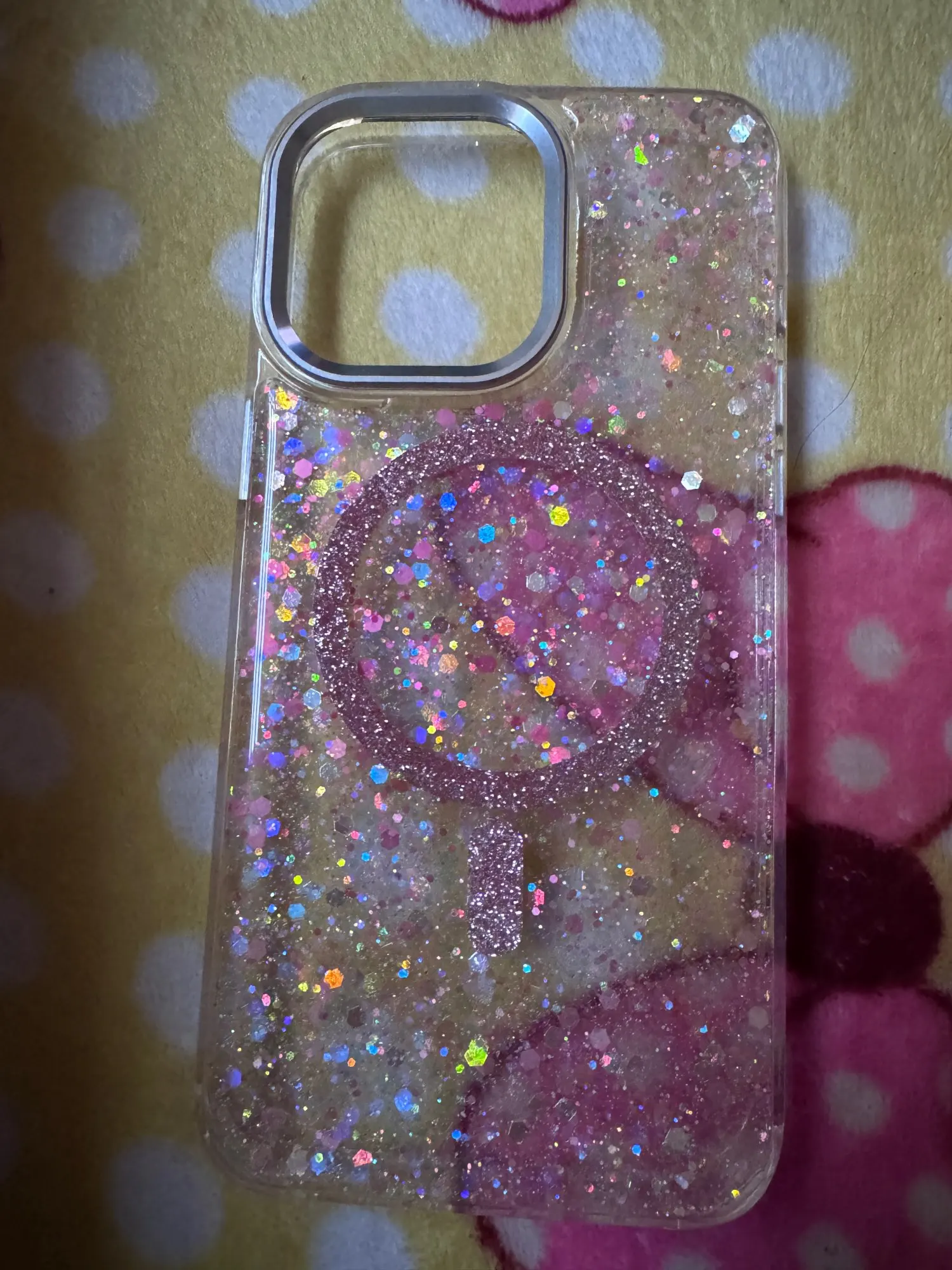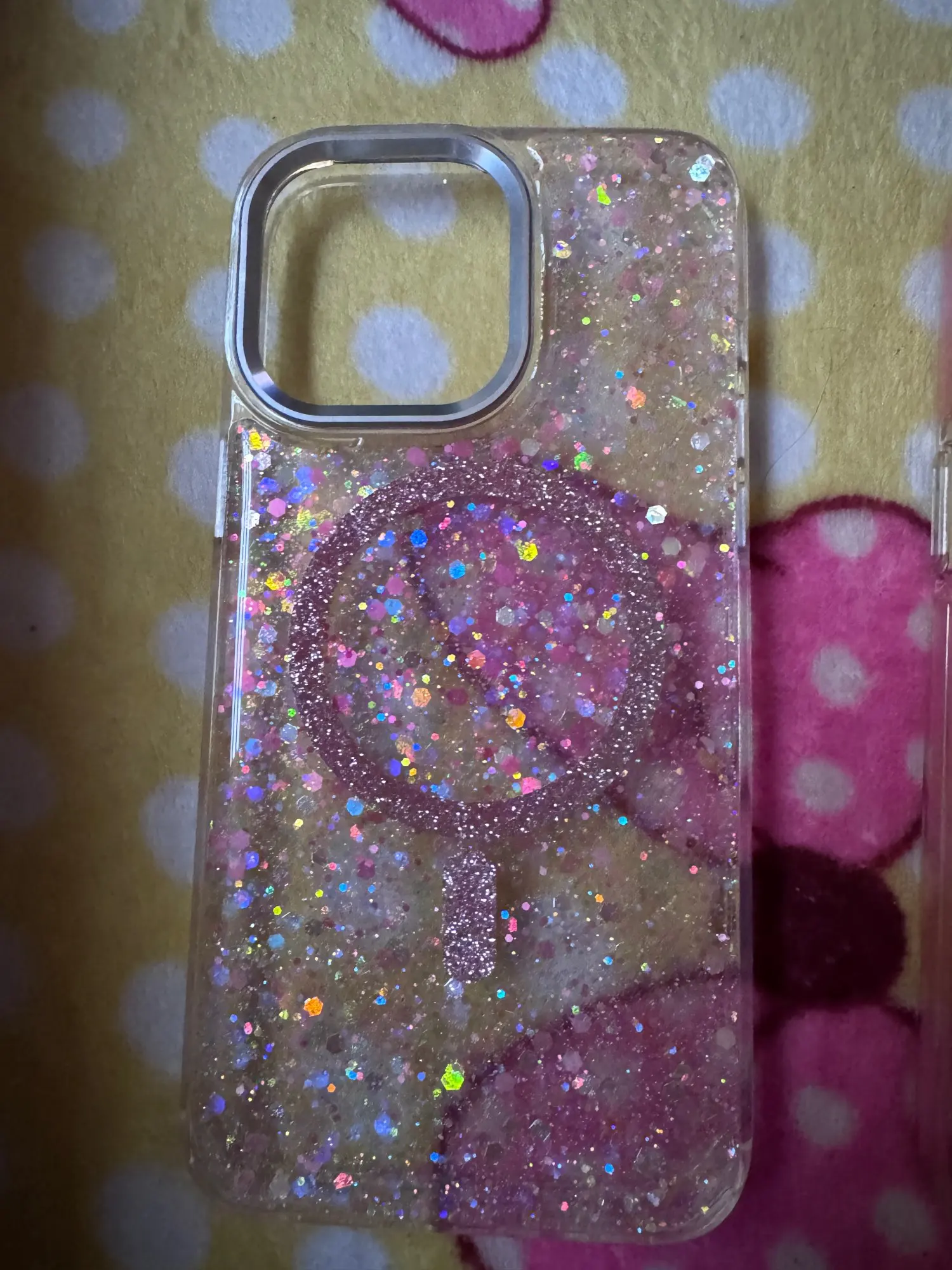 Add sparkle and protection to your iPhone with this glittery MagSafe-compatible case designed for impact resistance and wireless charging convenience.